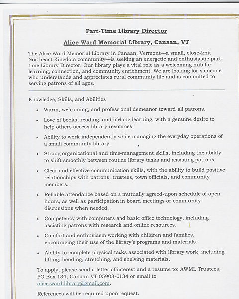 Contact us: #: 802-266-7135 email: alice.ward.library@gmail.com